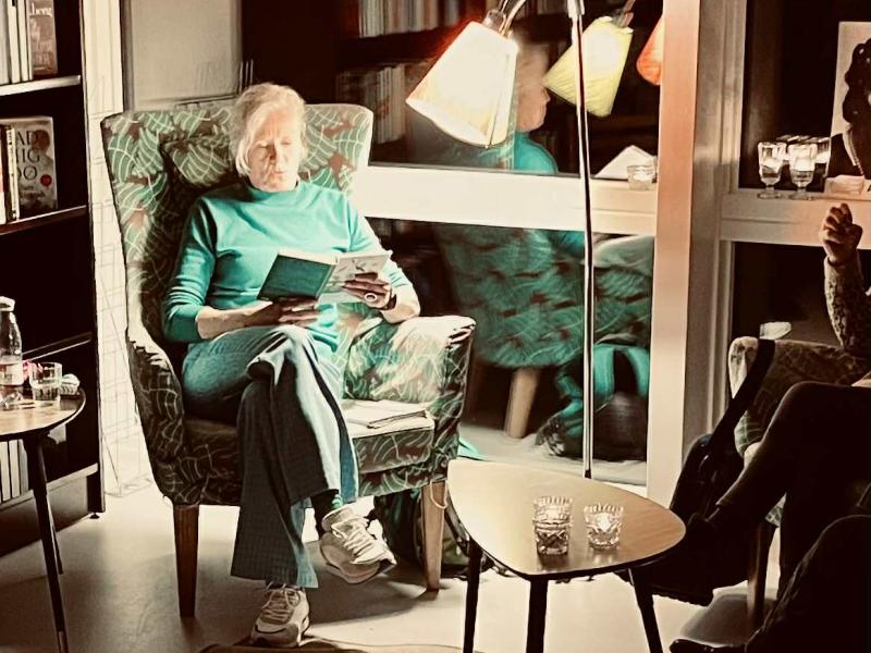Samsø BibliotekVores trofaste skumringslæser Ida Lundbye læser højt for voksne.